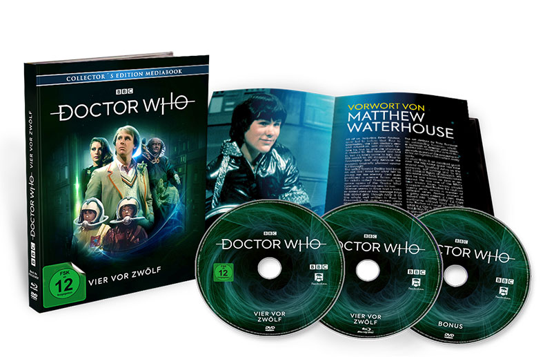 Können der Doktor und seine Begleiter den Monarch von seinem Plan abbringen und die Erde vor der Zerstörung retten? „Vier vor Zwölf“ erscheint nun erstmals als Deutschlandpremiere auf Blu-ray, DVD und limitiertes Mediabook, inklusive Booklet und umfangreichem Bonusmaterial, sowie Digital.